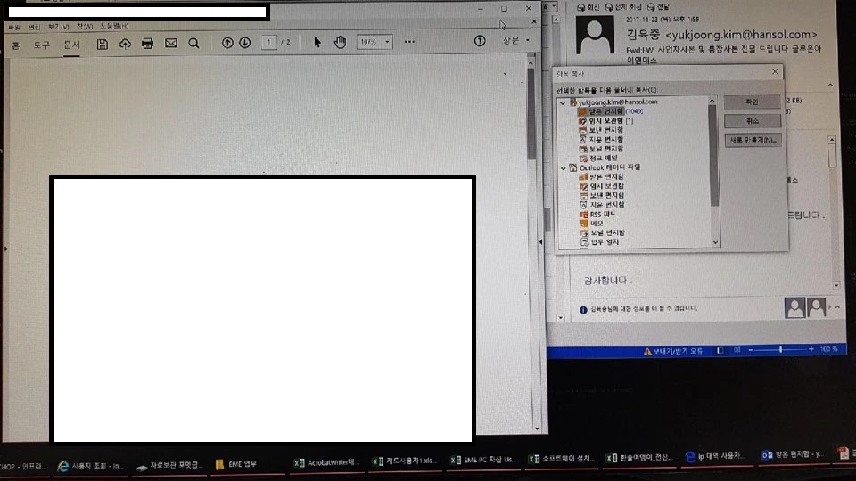 아웃룩에서 받은 PDF 이메일을 받고 파일을 열면 오른쪽에와 같은 항목 복사가 뜹니다.