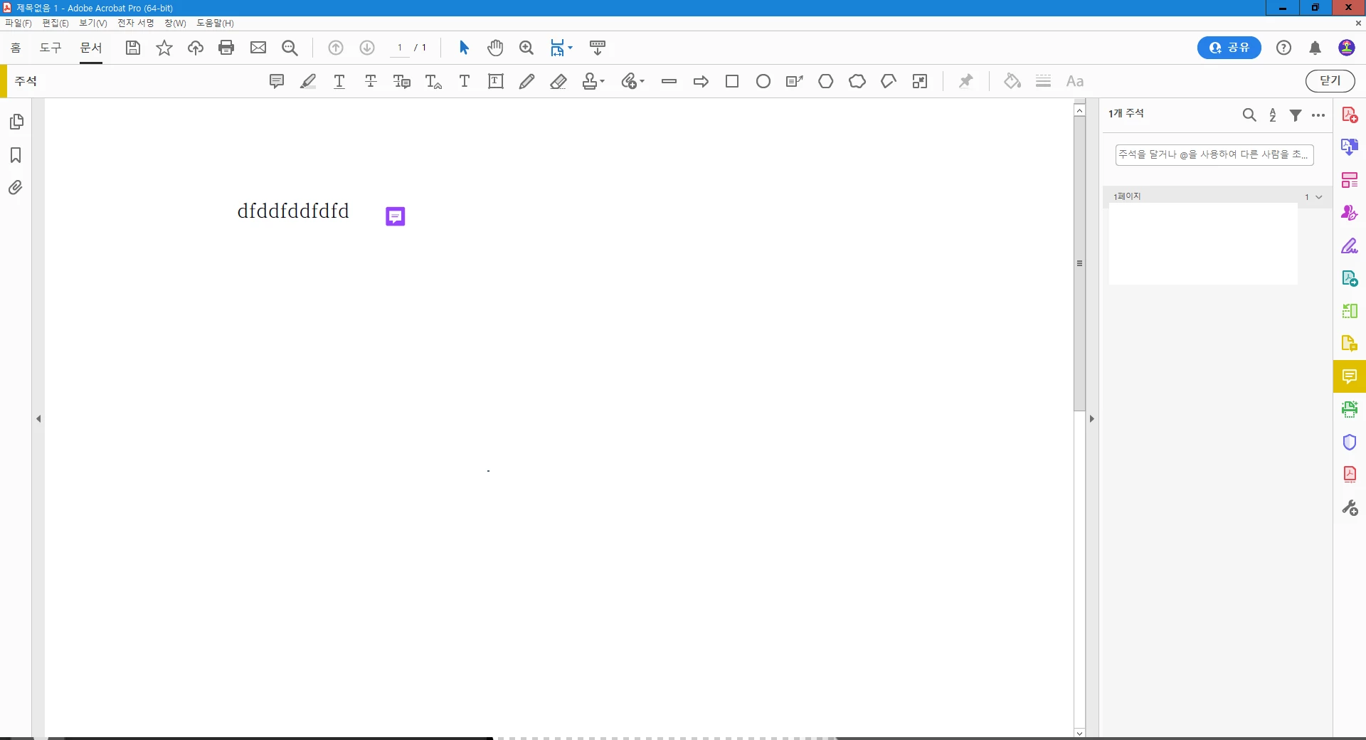 위의 아이콘 모양은 이전버전 아크로뱃 주석 아이콘 모양으로 보입니다.