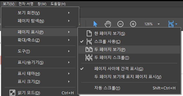 이제 PDF를 "두페이지 보기" 로 볼 수 없는건가요?