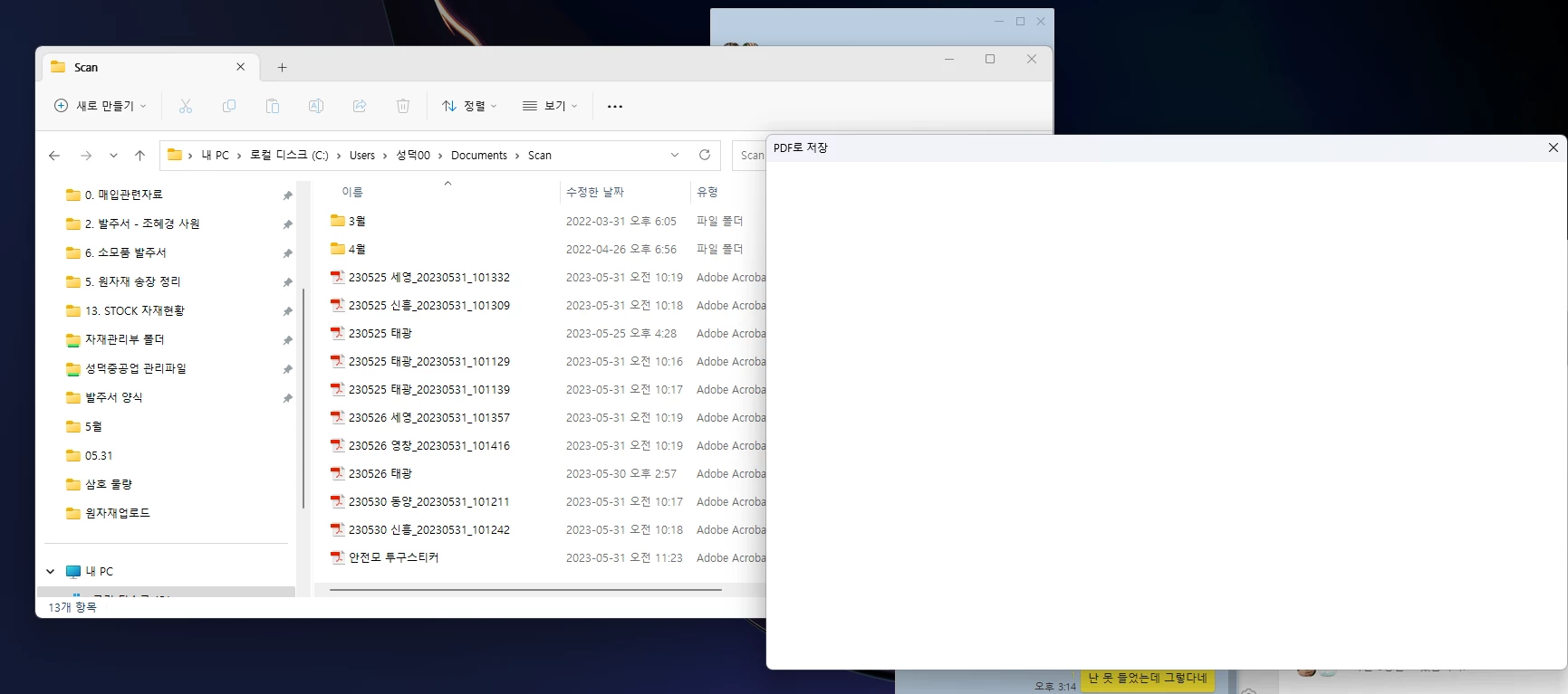 추줄 후 자료를 닫으려면 저장하는 화면으로 넘어가야 하는데 넘어가지 않고 흰 화면만 보입니다.