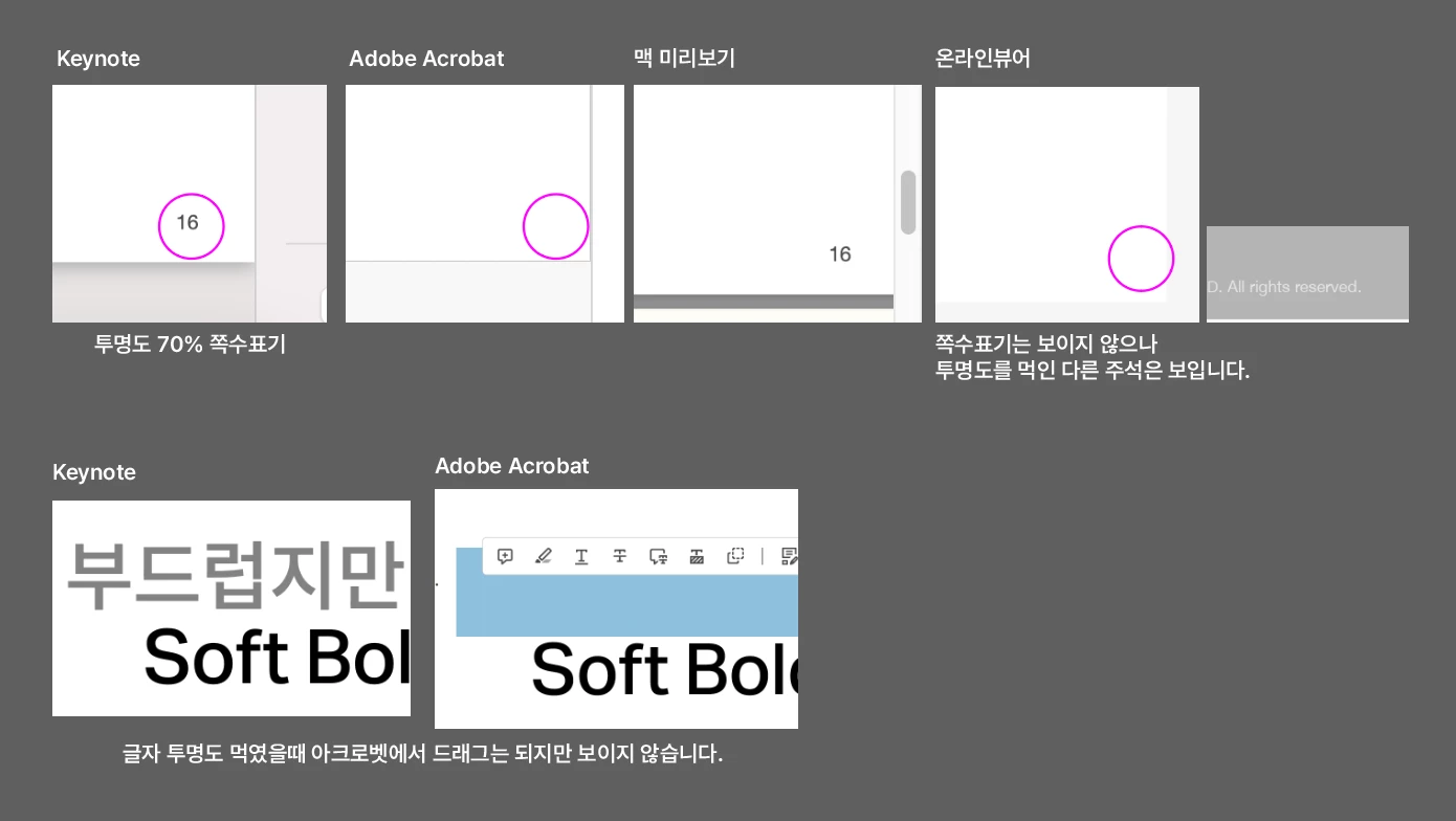 키노트에서 PDF파일로 변환 시 투명도 개체 문제