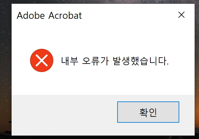 탐색기에서 아크로뱃리더 내부오류가 뜹니다.