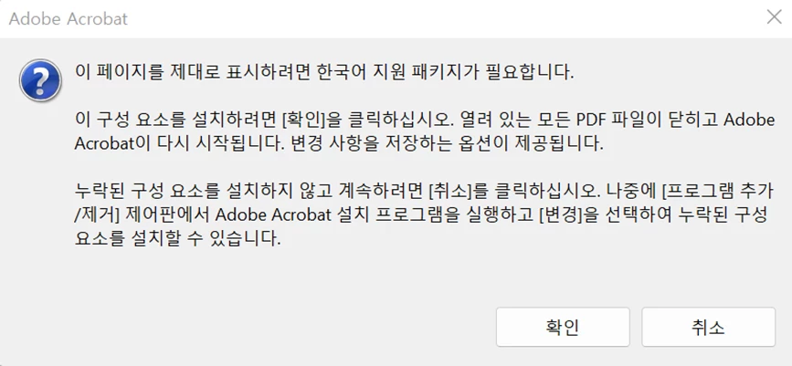 한글이 포함된 pdf 파일을 열려고하는데 아래와 같이 한국어 지원패키지가 필요하다고 뜹니다.