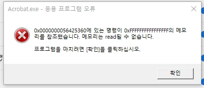 메모리도 여유가 있고 acrobat으로 pdf파일을 실행하지 않으면 문제가 없어서 프로그램의 문제인가 싶어 여러번 삭제하고 재설치를 해보았으나 계속해서 같은 오류가 생겨 문의드립니다...