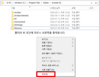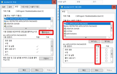 Acrobat 프린터 클릭시 프로그램이 종료되는 문제가 있습니다.
