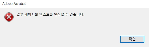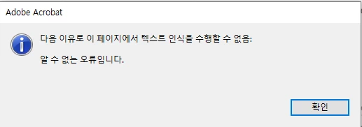 64비트 어크로뱃에서는 "알 수 없는 오류입니다" 메시지와 함께 한글이 인식되지 않고 32비트 어크로뱃을 설치하여 인식하면 정상 동작합니다.