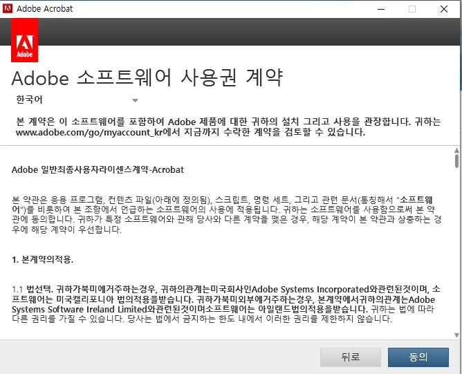 동의 버튼만 누르면 창이 사라지고, 어크로뱃도 실행되지 않습니다.