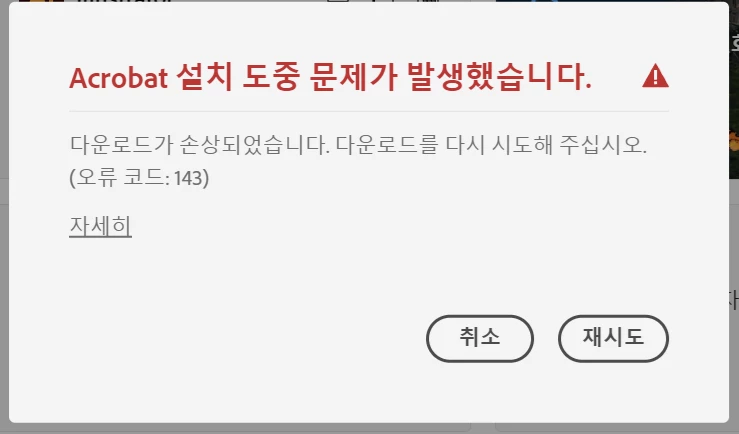 다운로드를 진행하고있는 파일에 손상이 있거나 경로등에 문제가 생기신 것일 수 있을 듯 합니다.