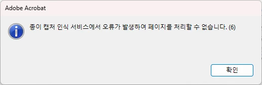 acrobat pdf 수정 작업 중 종이 캡처 인식 서비스 오류 발생 했는데 문제 해결 방안 부탁 드립니다.