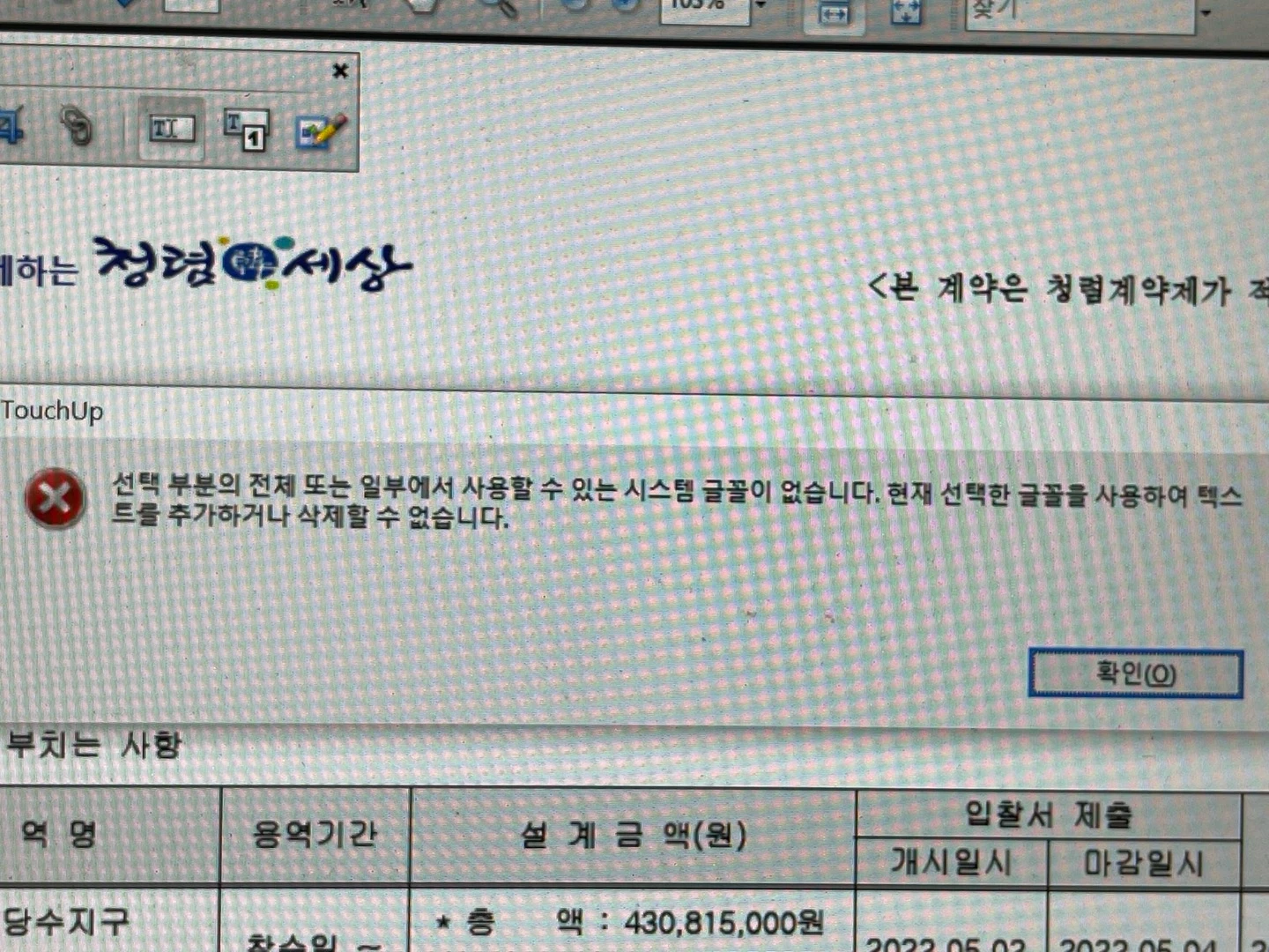 Acrobat X PRO를 사용중인데 문서 편집할때 "시스템 글꼴이 없습니다."는 에러문구가 뜹니다.