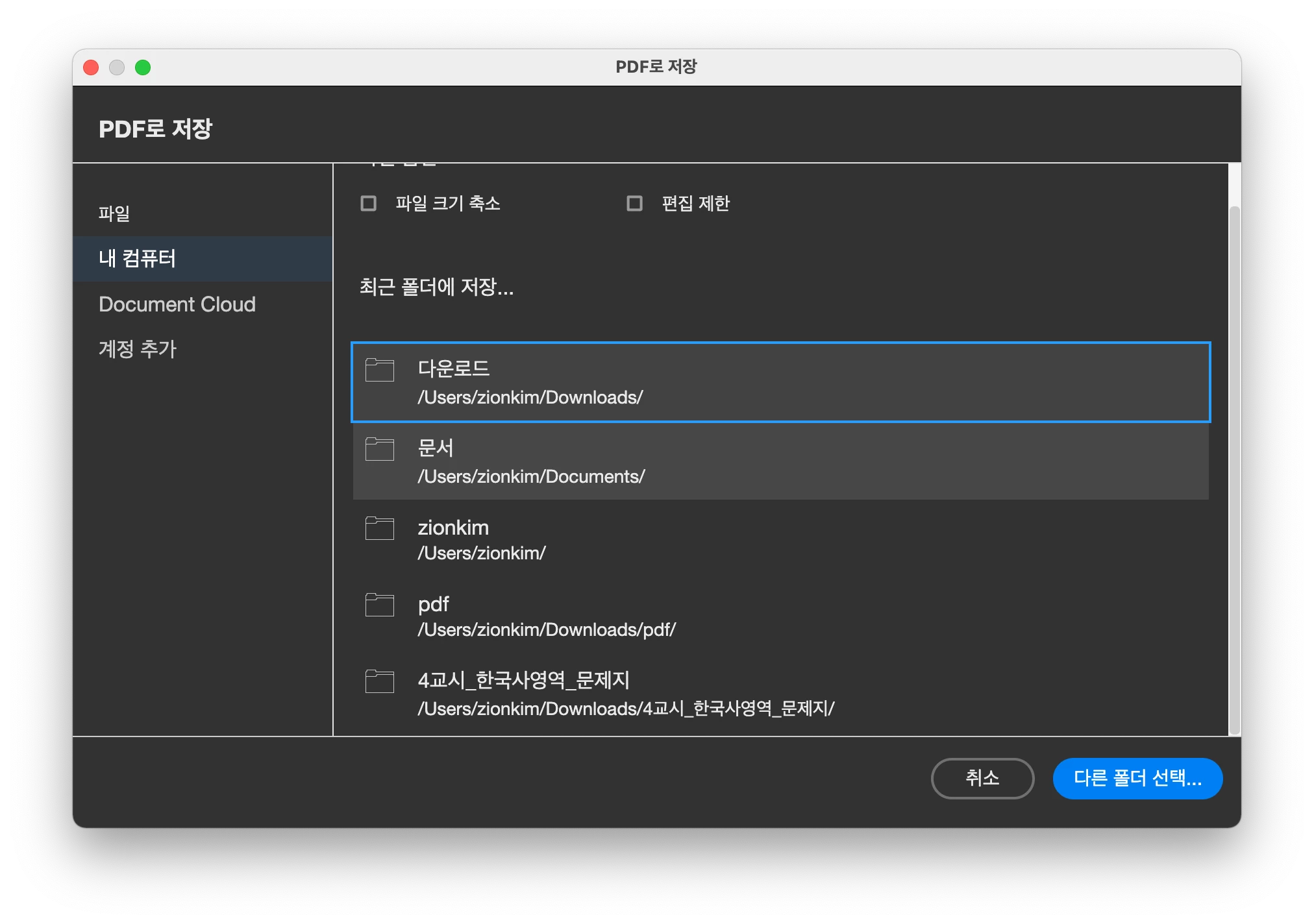 갑자기 최근에 저장한 A폴더에 저장이 됩니다.