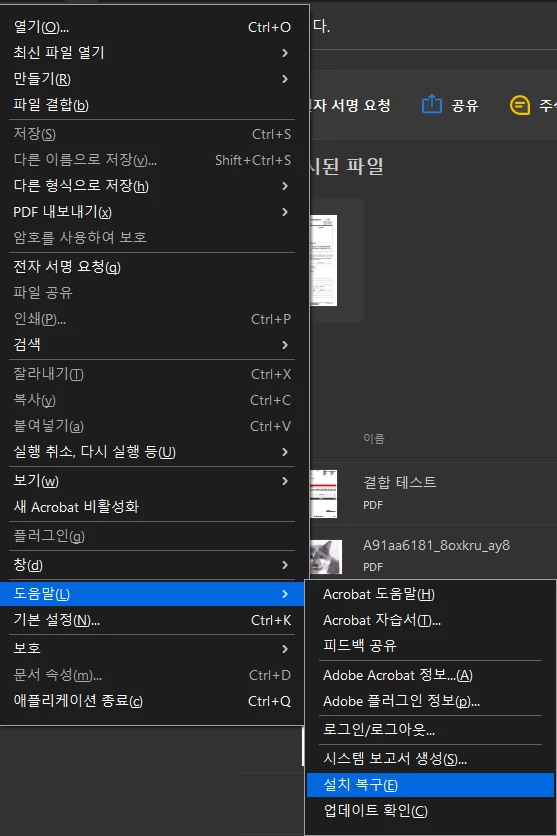 아크로뱃 자체에서 안 된다면 공식 컨버터 이용해보세요