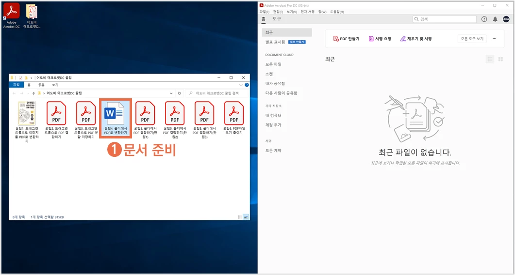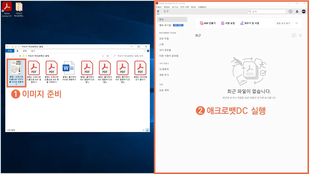 ① PDF로 변환할 이미지를 준비하고 애크로뱃DC를 실행합니다.