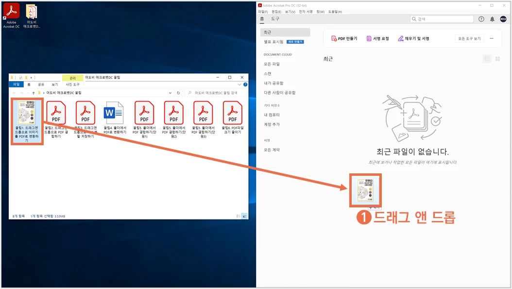 ② 이미지 파일을 애크로뱃DC로 드래그 앤 드롭 합니다.