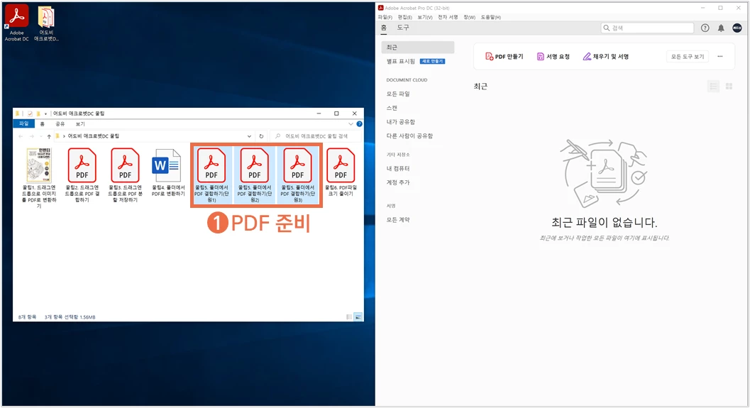 ① 결합 할 PDF를 2개 이상 준비합니다.
