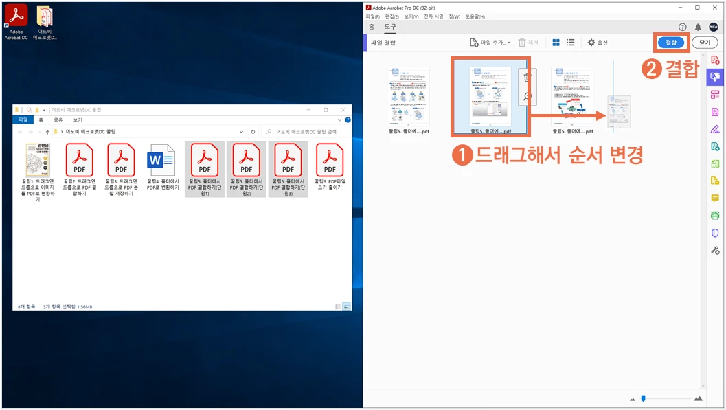 ③ 페이지를 드래그해서 원하는 대로 순서를 변경하고 결합합니다.