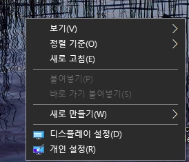 1. 바탕화면에 마우스 오른쪽 버튼을 통해 디스플레이 설정으로 접속 해주세요.