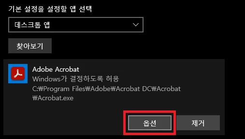 3. 찾아보기 앱을 선택 하시어 acrobat 을 추가 합니다.