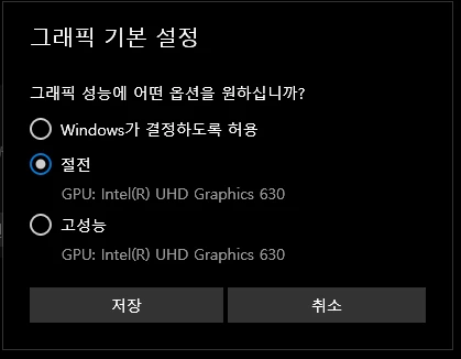 5. 절전 모드로 선택한 다음 , PC 재부팅을 해주세요.