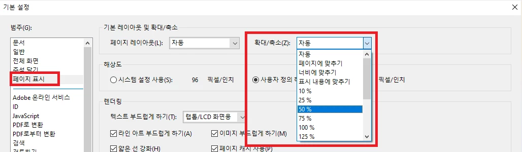 ① pdf를 열었을때 매번 75%를 클릭해야하는데 한번 설정하면 다음부터는 항상 75%로 설정하고싶습니다. pdf 열일이 많아서요.