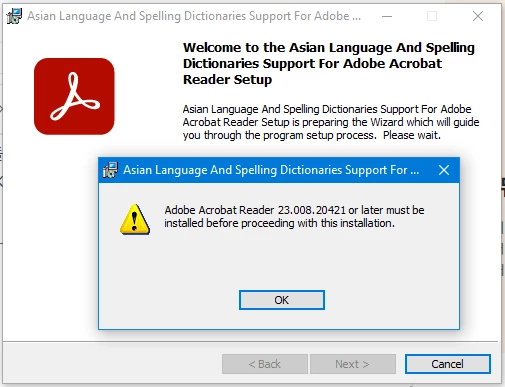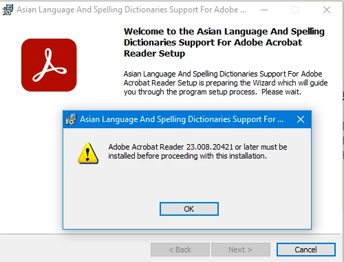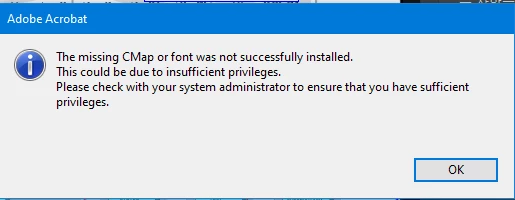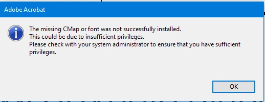 홈페이지에서 'AcroRdrALSDx64_2300820421_all_DC' 파일을 받아도 아래 사진처럼 폰트 설치가 안됩니다.