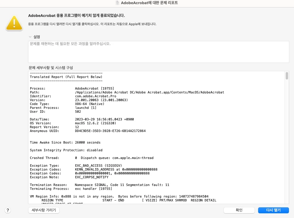 UUniQ PastorParticipantForum|Forum|2 years agoMarch 29, 2023質問아크로벳이 열리지 않고 에러 메시지가 뜹니다.Forum|Forum|2 years agoMarch 29, 2023返信数 1.433 ビューMacos를 업데이트 한 이후로, 아크로벳이 열리지 않고 에러 베시지가 뜹니다.