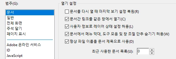 최근 사용한 문서 목록 숫자를 줄여 문서 로딩에 최적화 할 수 있습니다.