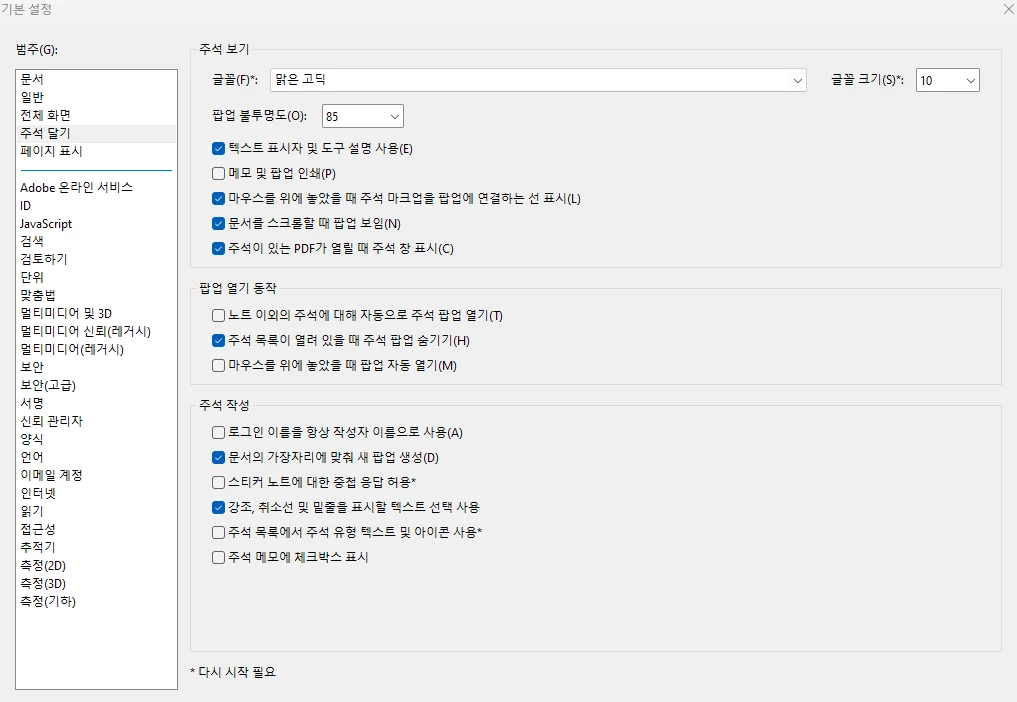환경설정을 바꾸고 다시 시작해도,