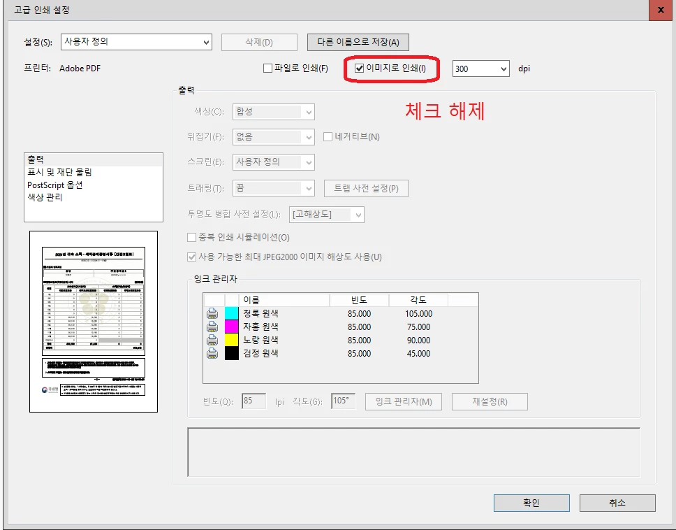 체크를 해제한 후 포스터 인쇄 작업을 진행해보시기를 권장드립니다.