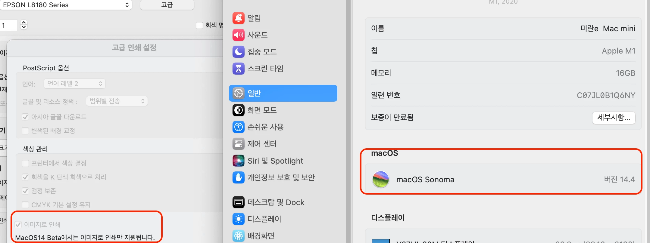 mac os 14베타에서는 이미지로 인쇄만 지원된다고 하지만 제 버전은 정식버전인 14.4입니다.