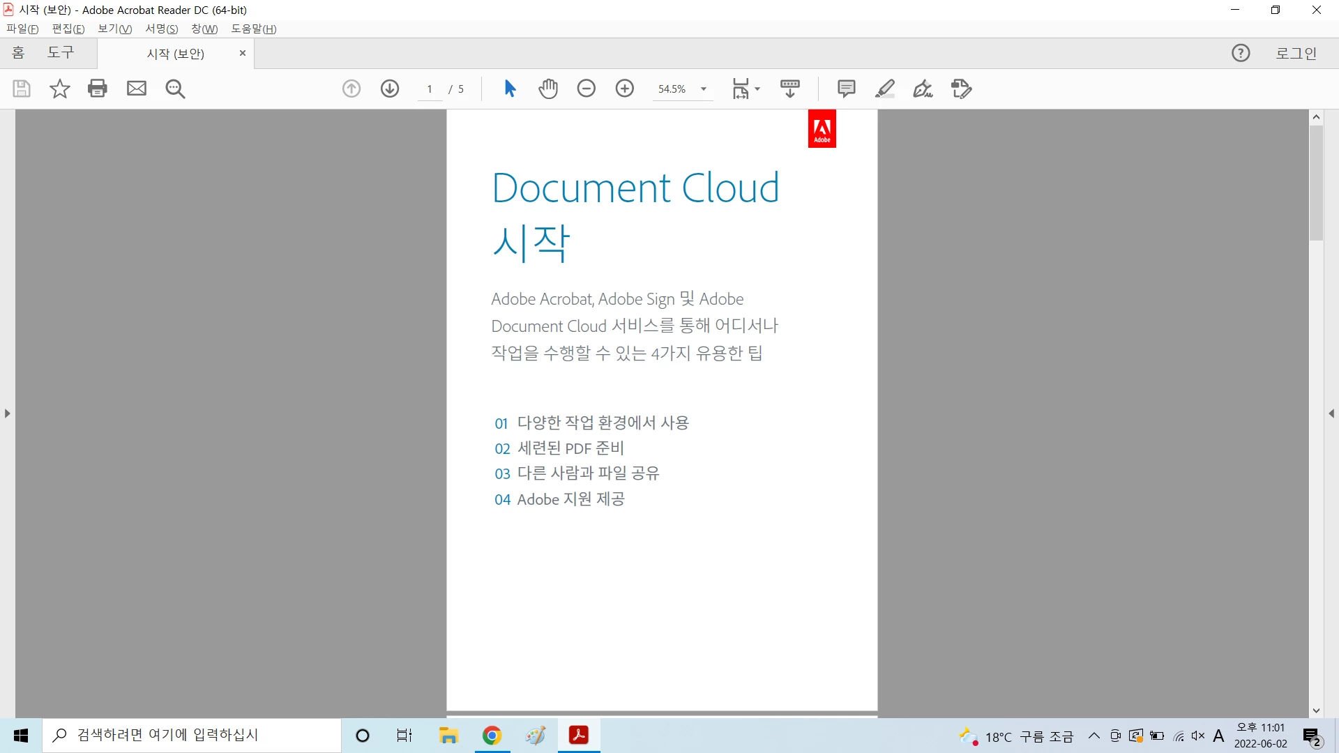 PDF 파일을 열람하기 위해 주로 Acrobat Reader를 이용하시는 분들이 많습니다. 그러나 간혹 열람 목적으로만 사용하시는 분들을 보면, 기존에 설정되어 있는 페이지 보기 방식 때문에 불편함을 느끼십니다. 이를 해결하기 위해 간단한 페이지 설정으로 내용을 보다 보기 편하고, 빠르게 파악할 수 있습니다.
