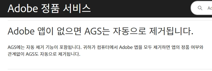 설치 페이지에는 "AGS에는 자동 제거 기능이 포함됩니다. 귀하가 컴퓨터에서 Adobe 앱을 모두 제거하면 앱의 정품 여부와 관계없이 AGS도 자동으로 제거됩니다. "라는 내용이 기재되어 있는 것과 달리, 윈도우 설정 > 앱 > 제거 기능을 통해 Adobe 앱을 모두 제거하였음에도 GC Client는 파일이 그대로 컴퓨터에 남아 있는 것이 확인됩니다(Acrobat Reader 관련 파일은 모두 삭제되었으나, GC Client관련 폴더와 파일은 그대로 남아 있음).