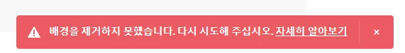 배경제거 기능 유용하게 사용해왔는데 어느 순간부터 저 위의 메세지가 뜨더니 배경제거가 안되고 있습니다. 뭐가 문제인지 모르겠네요. 해결방법 아시는 분 계신가요?