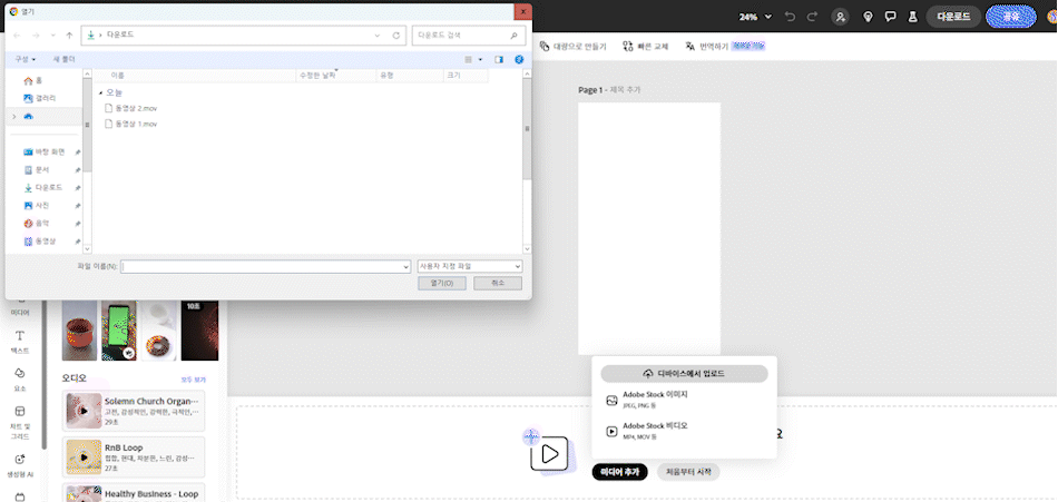 여기서도 [ 디바이스에서 업로드 ] 항목을 눌러주세요!
