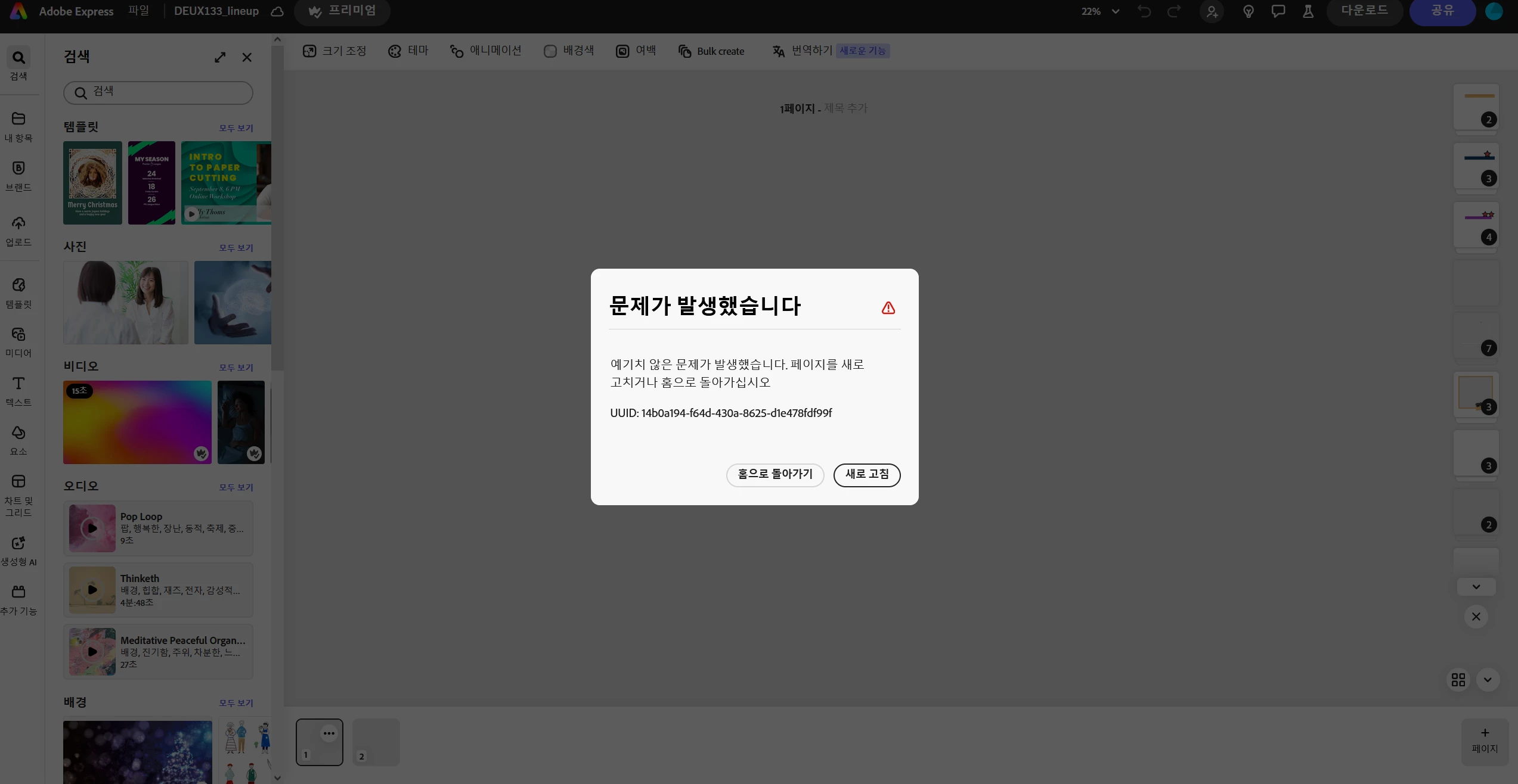 예기치 않은 문제가 발생했습니다. 페이지를 새로 고치거나 홈으로 돌아가십시오