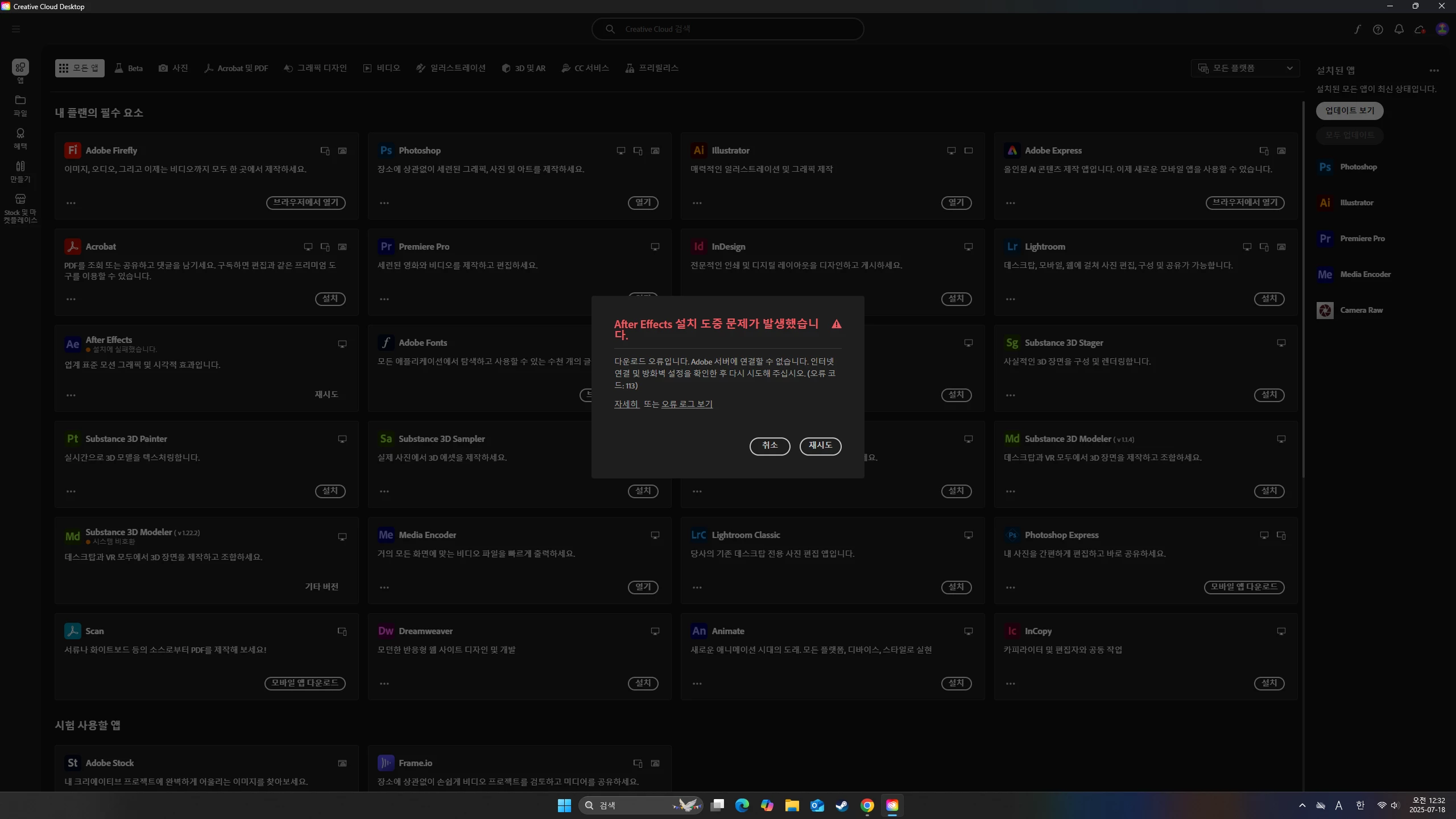 [급함]에프터 이팩트의 설치가 되지않습니다