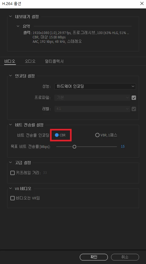 보통 렌더링시 VBR로 진행을 많이 하는데요,