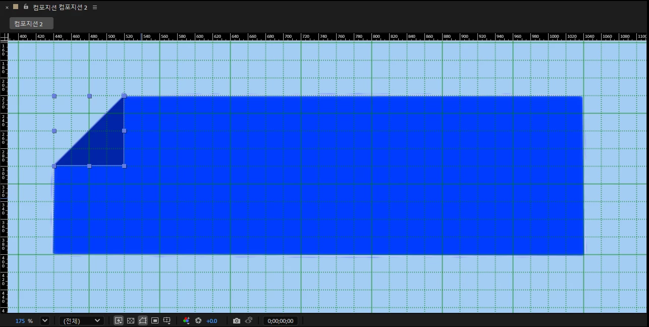 펜툴로 변경해서 원하는 크기에 맞게 눈금자 확인 및 격자를 보면서 다각형 틀을 그리고 나서 타임라인의 빈 공간을 눌러 도형을 만들어 줍니다.