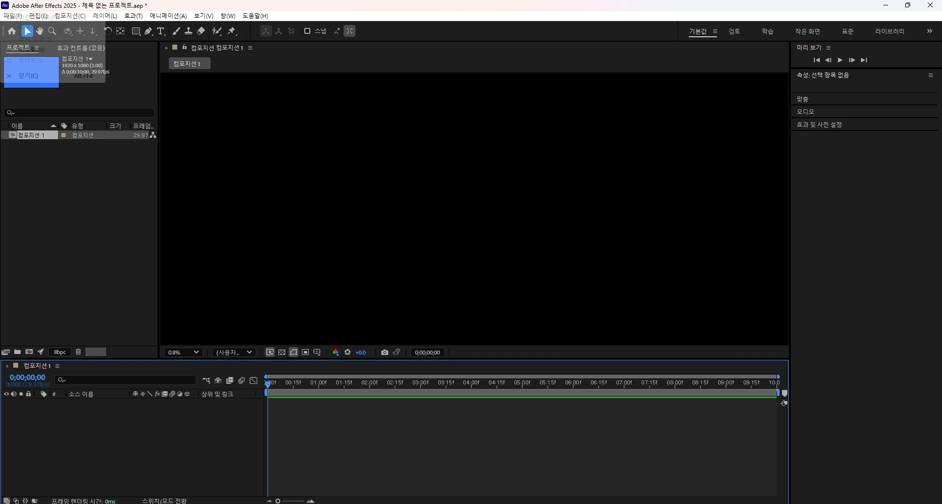 애프터이팩트 컴포지션이 아예 안 떠요