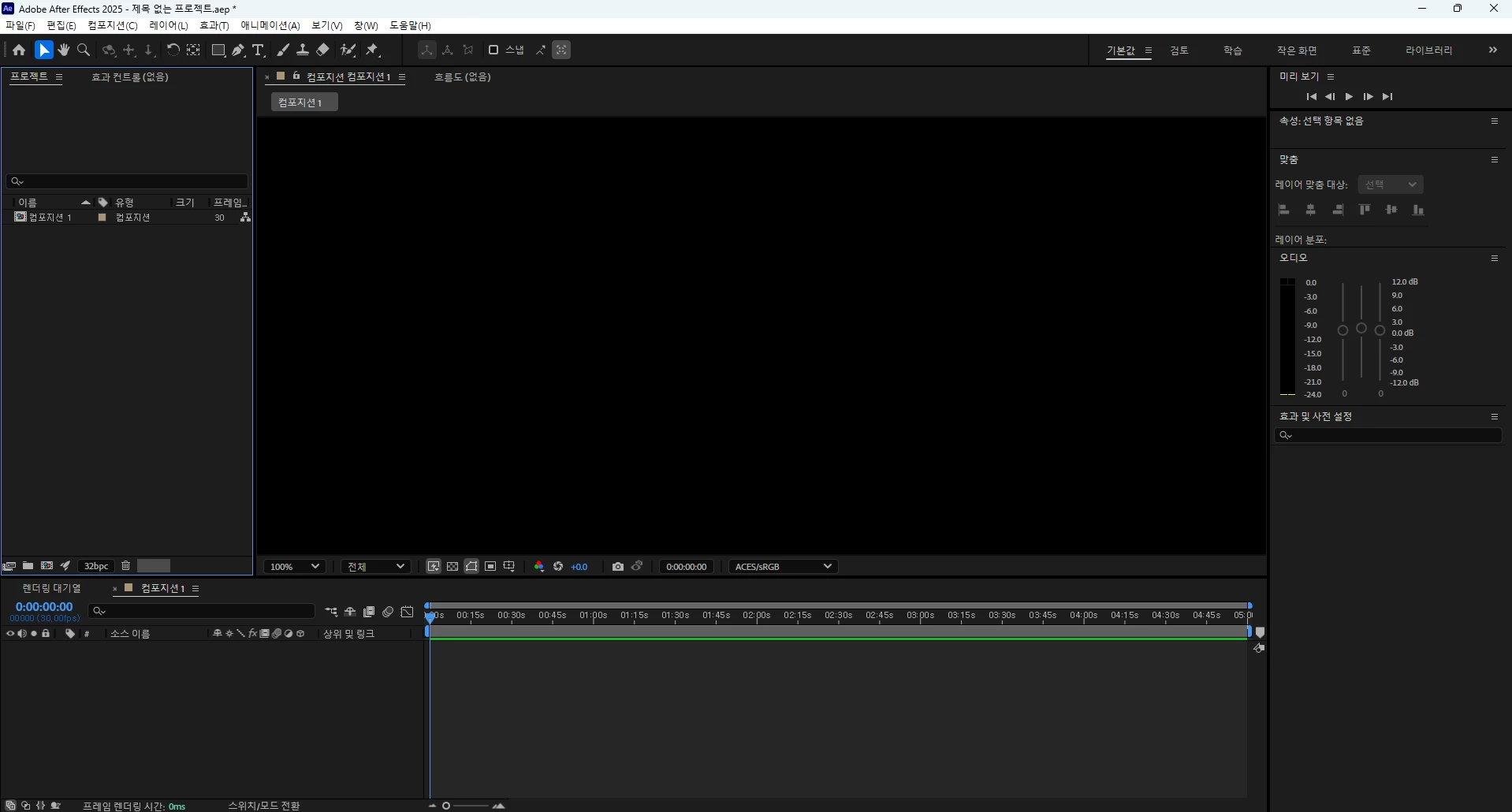 컴포지션 화면이 블랙 화면으로만 뜨는데 어떻게 고치나요..