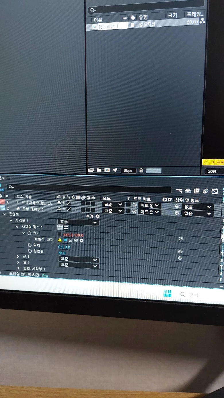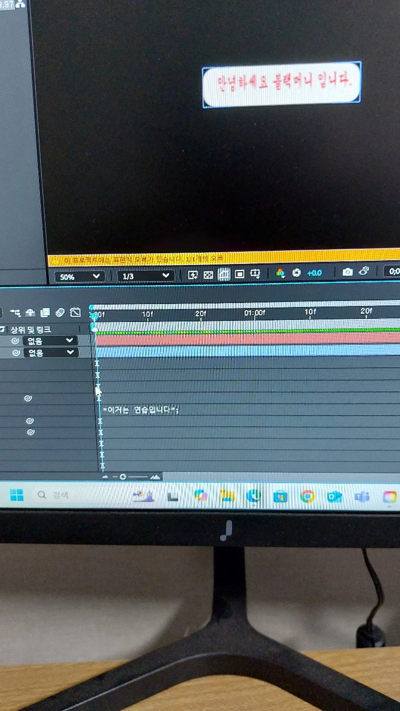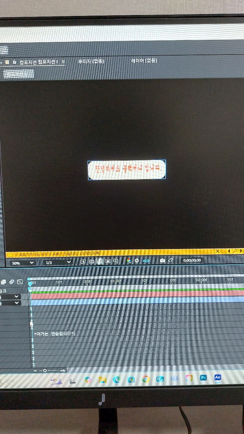 애프터 이팩트 자막바 연습이 오류가 났어요