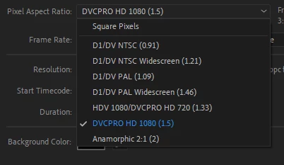 2. 정사각형 치수를 입력하였으나, 직사각형으로 보이는 문제 - 컴포지션 설정에서 픽셀 종횡비를 Square Pixel로 변경해보세요. 종횡비 1.5로 되어 있는 것 같습니다.
