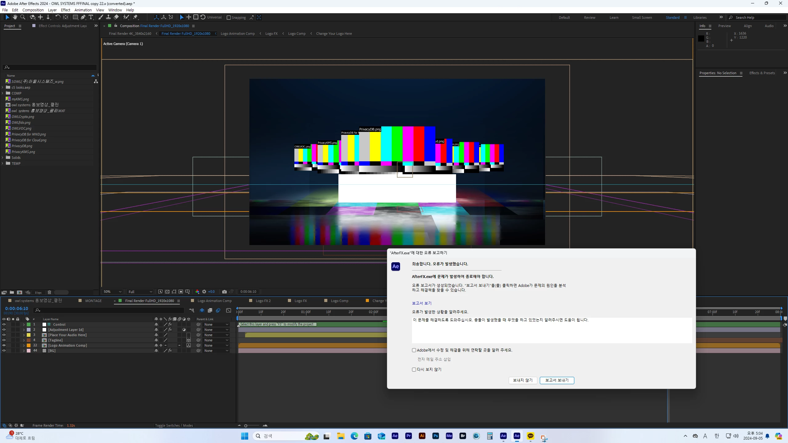 이 PC에서 애프터이펙트 작업을 하다보면 튕기거나 위의 이미지 처럼 여러가지 오류가 뜹니다.