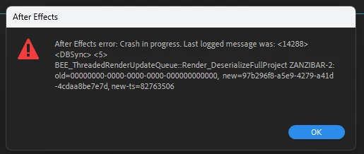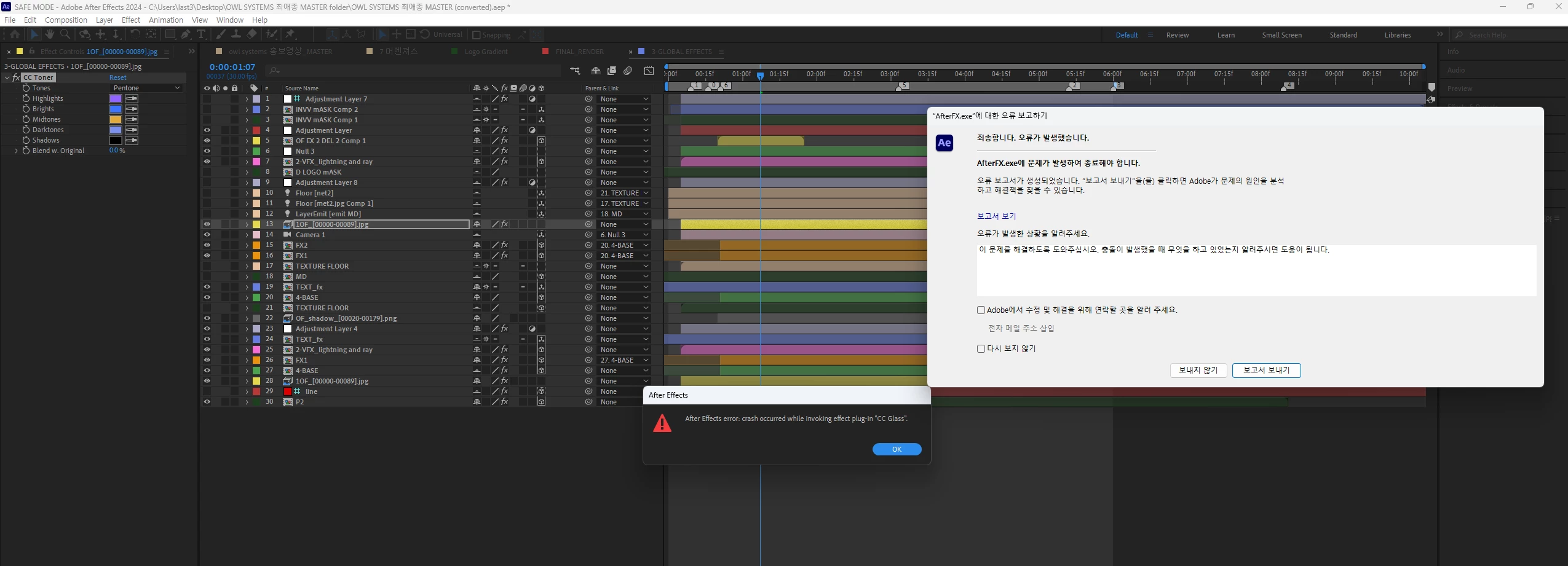 특히 Curve, CC ~ 가 붙은 효과를 사용하면 오류가 잘 뜹니다.