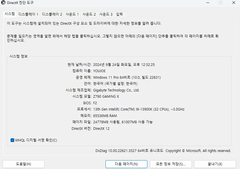 현재 사용중이신 인텔13세대 CPU가 장착된 마더보드의 바이오스 업데이트가 필요하실수도 있으니 한 번 시도 해볼 수 있습니다.