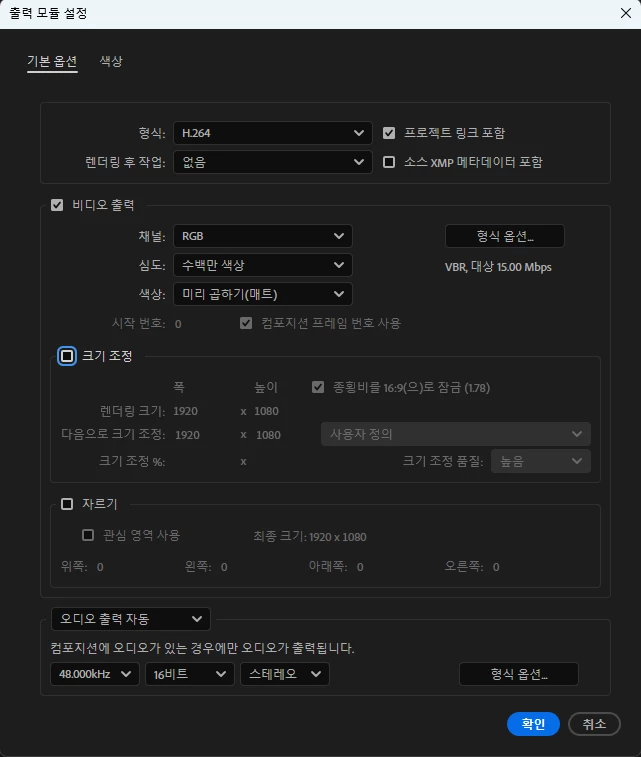에펙에서 보이는 컴포지션 비율이랑 랜더링 뽑힌 결과물 비율이 다른 문제 해결어떻게 해결해야할까요 ㅜㅜ