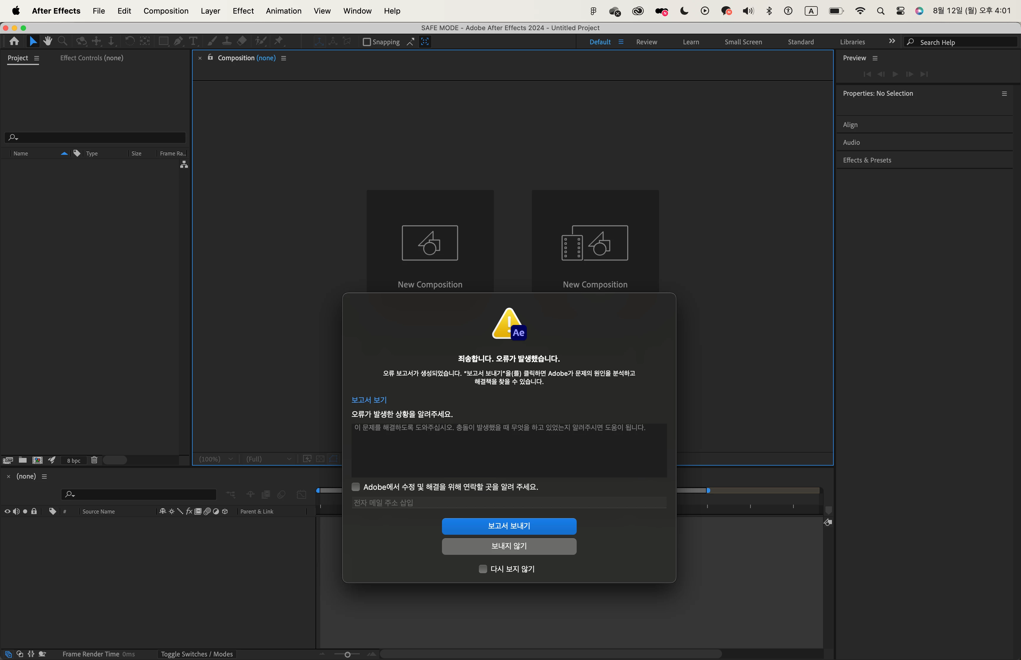 옛날 버전 다운, 컴퓨터 재실행, 에펙 삭제 후 재다운로드 다 해봤는데도 안됩니다...