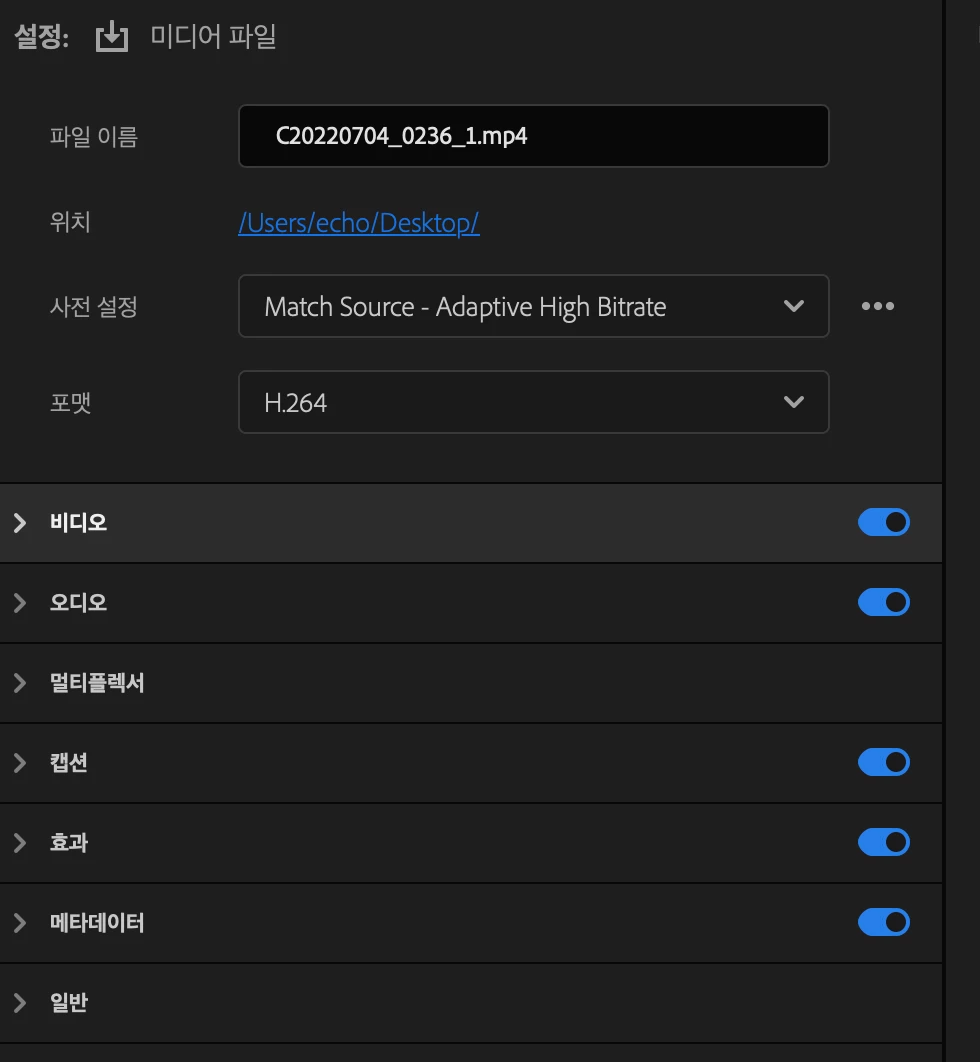 그런데 작업하고 나니까 match sorce adaptive high bitrate로 뽑아 달라고 요청하셨어요.ㅠ
