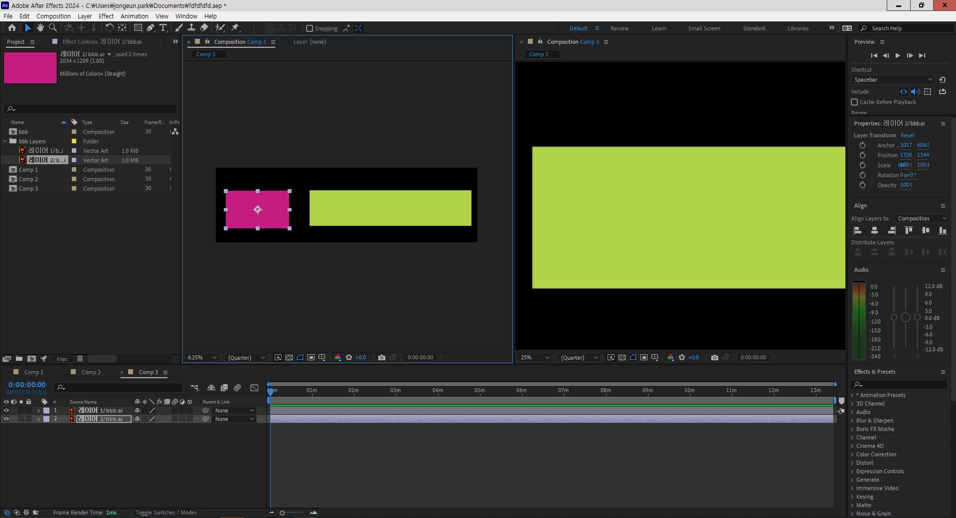 Import-> Composition - Retain Layer Sizes 이 경로로 들어갔습니다..