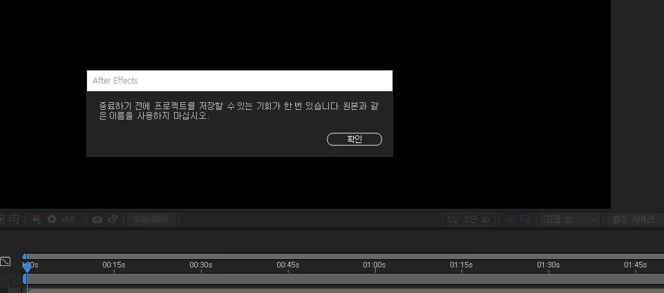 클래식 3D에서 고급 3D 로 바꾼뒤 컴포지션이 열리지 않습니다